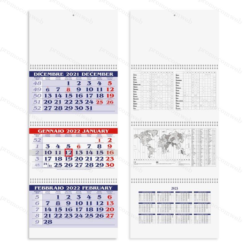 calendario trittico 3 spirali 3 blocchi da 12 fogli carta naturale 80gr testata e supporto cartoncino lusso 600gr notizie utili stampate sul supporto in cartoncino festivit internazionali cursore incluso gi montato tecnica di stampa consigliata: adesivo digitale - serigrafica