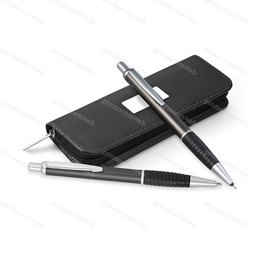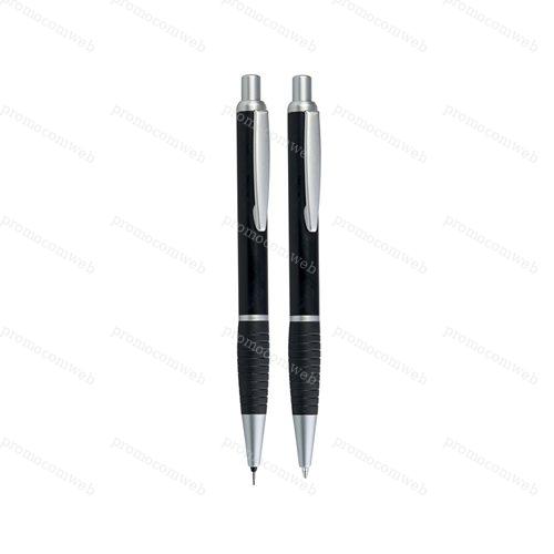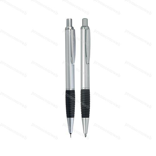 set composto da penna + portamine penna a sfera e portamine a scatto in lacca metallizzata grip in gomma minuterie in metallo cromato refill jumbo con sfera al tungsteno inchiostro nero tecnica di stampa consigliata: serigrafica - tampografica - incisione - UV