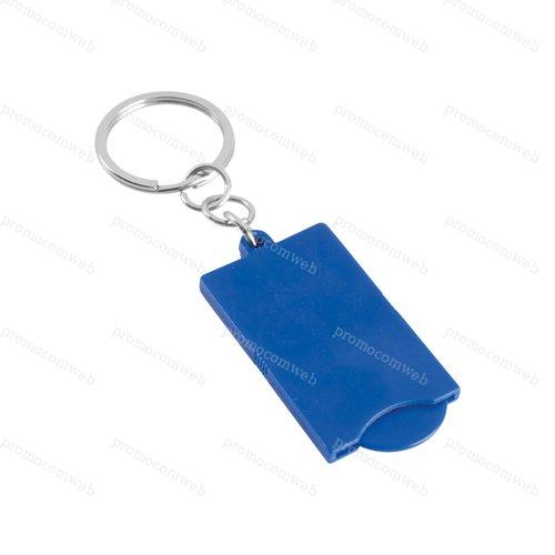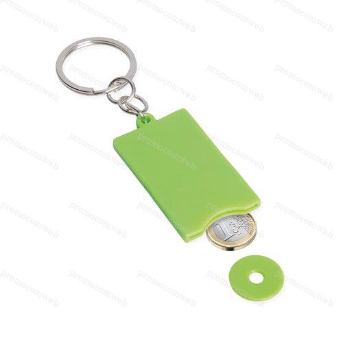 portachiavi con disco in plastica estraibile per carrello spesa pu contenere anche una moneta da 1 euro anello in metallo cromato personalizzabile fronte e retro tecnica di stampa consigliata: serigrafica - tampografica - UV