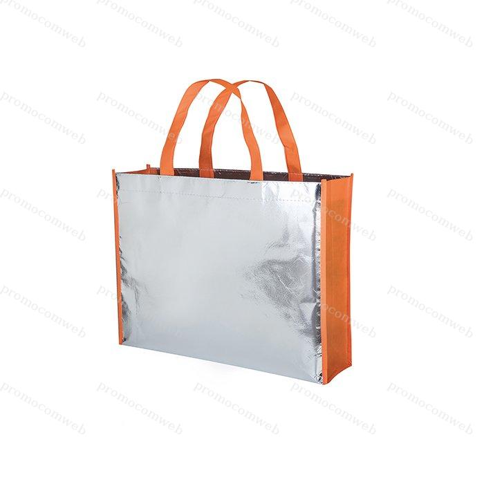 borsa shopping con soffietto manici lunghi rifiniture cucite tecnica di stampa consigliata: serigrafica