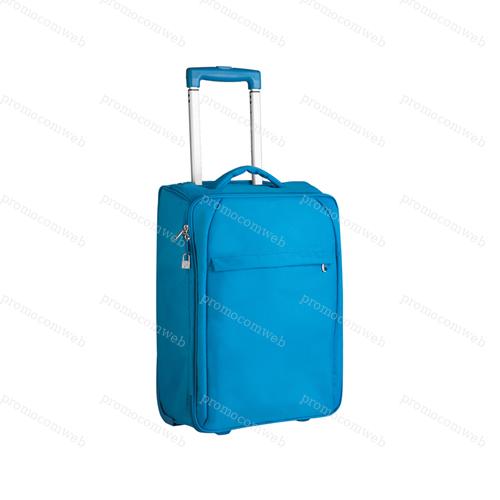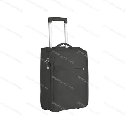 trolley da viaggio imbottito nylon 300D manico estraibile maniglia imbottita tascone frontale tascone interno con cerniera piedini di appoggio e ruote in tinta pieghevole (salvaspazio) rotelle in tinta tecnica di stampa consigliata: serigrafica - transfer