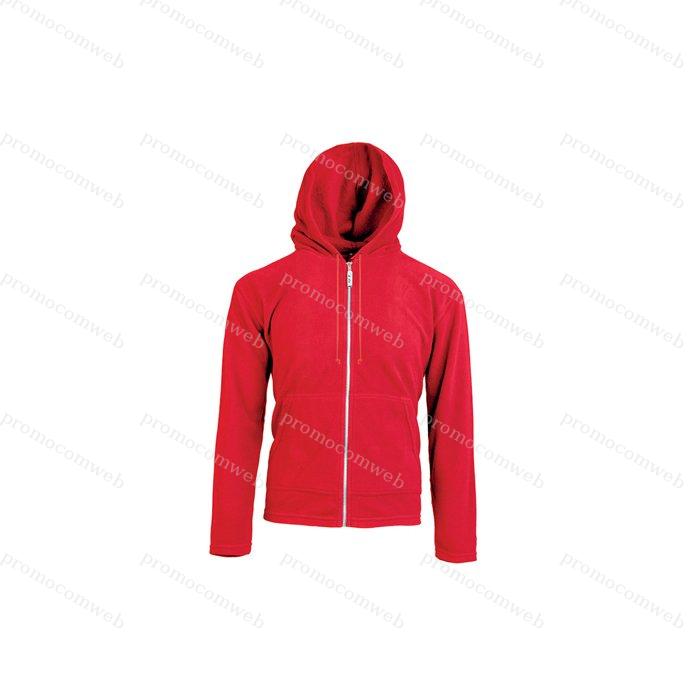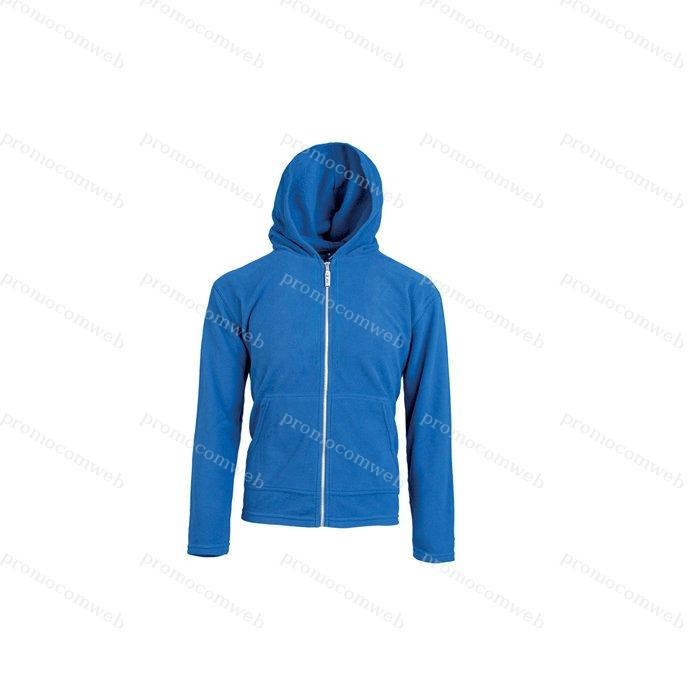pile antipilling con cappuccio e cordoncini zip lunga con cursore removibile 2 tasche a marsupio ribattitura doppio ago su collo. polsini e orlo nastro di rinforzo interno da spalla a spalla colori reattivi