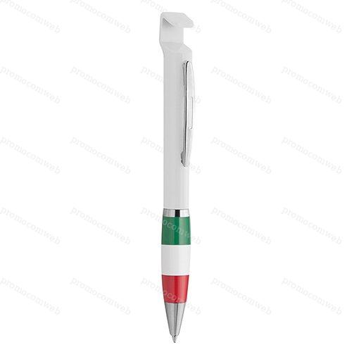 penna a sfera con supporto per smartphone meccanismo a rotazione corpo in plastica colorata minuterie in metallo cromato refill con sfera al tungsteno inchiostro nero tecnica di stampa consigliata: serigrafica - tampografica - UV