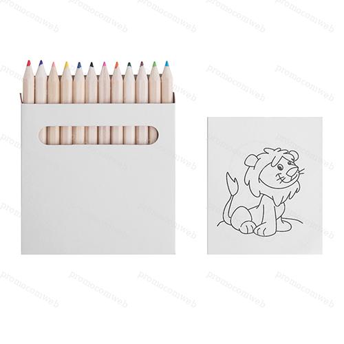 set 12 mini pastelli forniti gi temperati 12 disegni da colorare carta 80 gr. custodia in cartoncino bianco tecnica di stampa consigliata: serigrafica - tampografica - UV