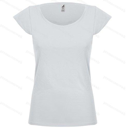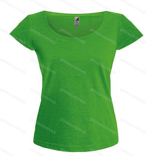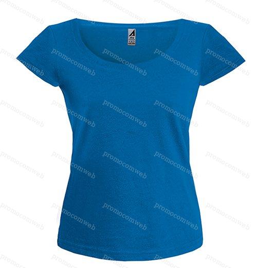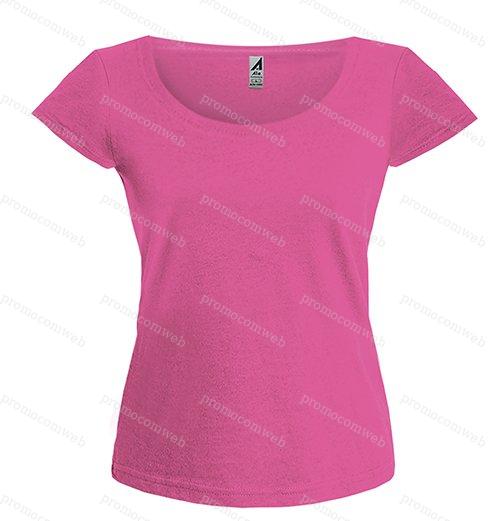 t-shirt donna cotone pettinato girocollo a costina rinforzata ribattitura doppio ago su collo. maniche e orlo nastro di rinforzo interno cuciture laterali colori reattivi 155 gr.