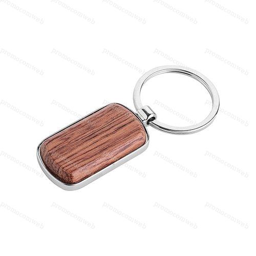 portachiavi ad anello piatto corpo in legno rettangolare finiture in metallo cromato tecnica di stampa consigliata: serigrafica - tampografica - incisione - UV