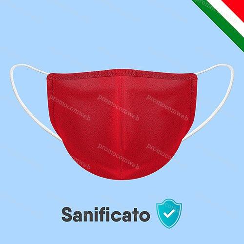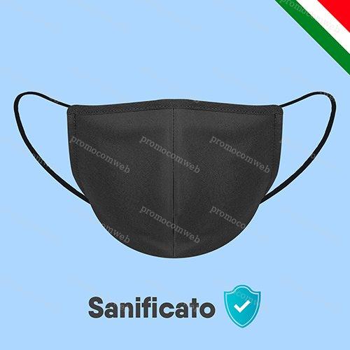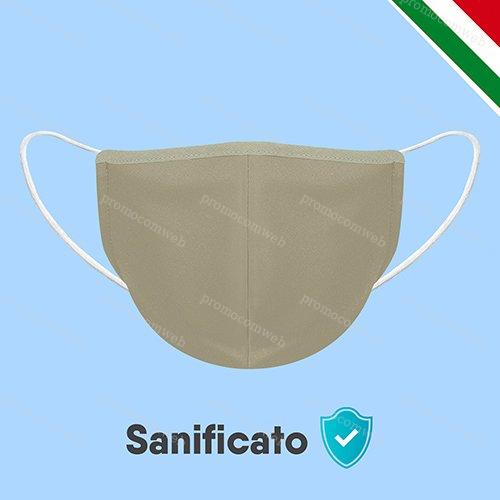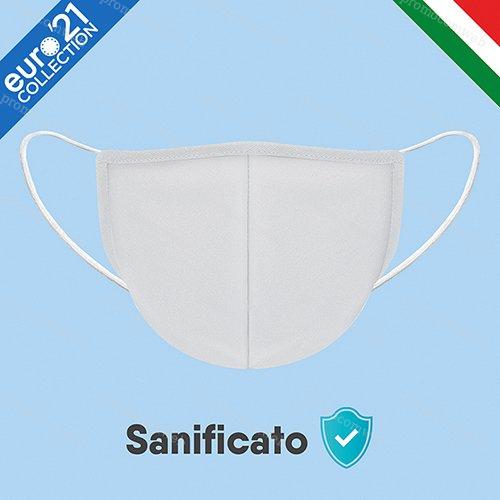 mascherine made in Italy prodotto sanificato esterno ed interno in 100% cotone popeline interno in tnt idrorepellente lavabile e riutilizzabile elastico morbido regolabile certificati disponibili su richiesta cucitura parte superiore non è un dispositivo medico/sanitario spazio di stampa cm 8.5x10 ca per lato (larghezza per altezza)
